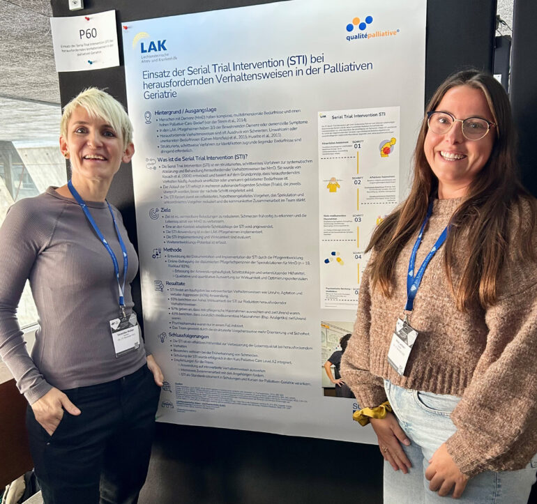 Ende November präsentierten wir unsere beiden Praxisentwicklungsprojekte „One Minute Wonder“ und „Serial Trial Intervention“ an der Nationalen Tagung Palliative Care – ein Erfolg, nachdem unsere Abstracts bereits im August akzeptiert wurden.